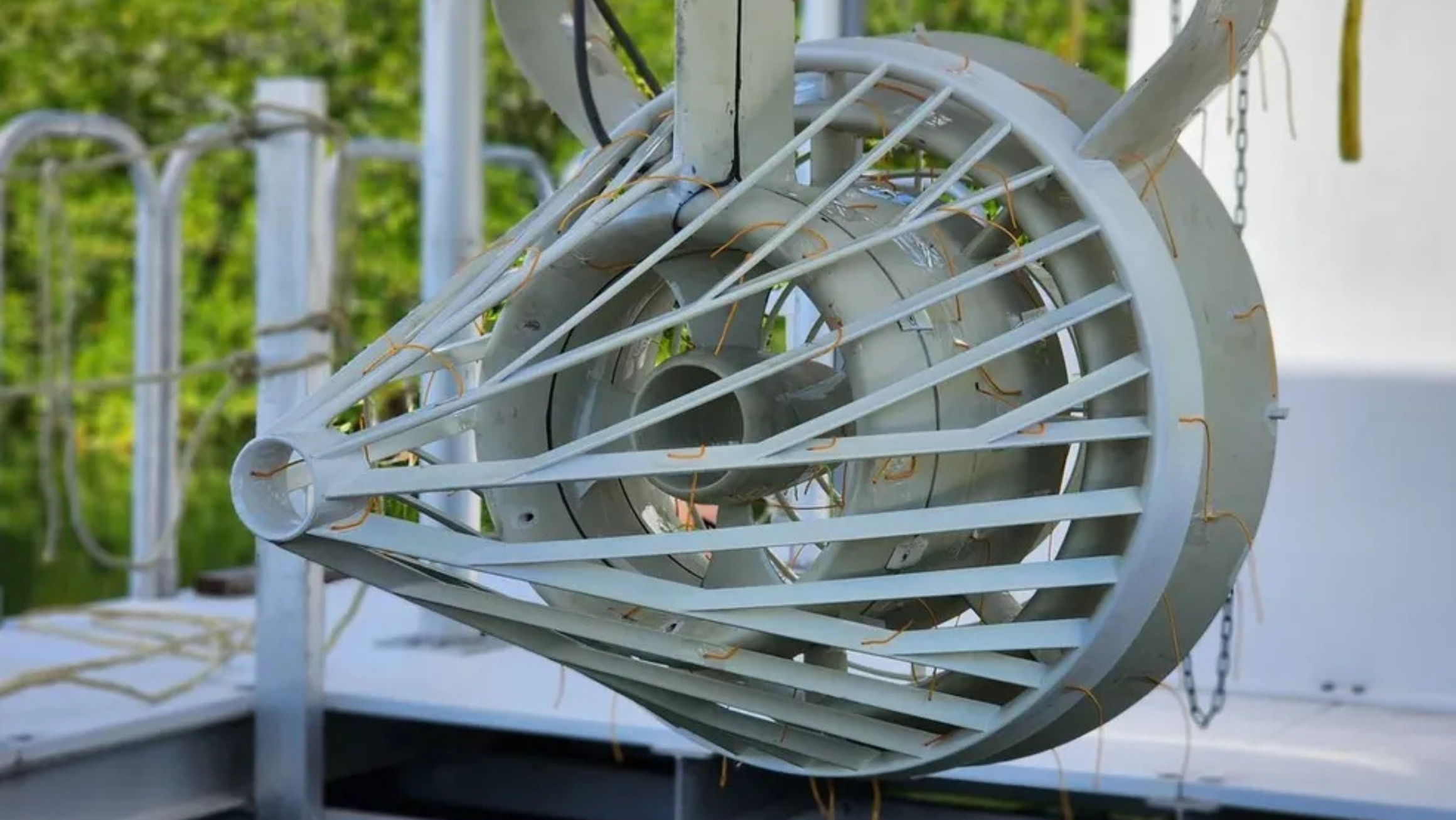 The turbines are built using 3D-printed carbon fiber materials, making them lightweight, durable, and 100% recyclable. They are made to run for 20–25 years in salt or fresh water environments without harming the surrounding environment and marine life.